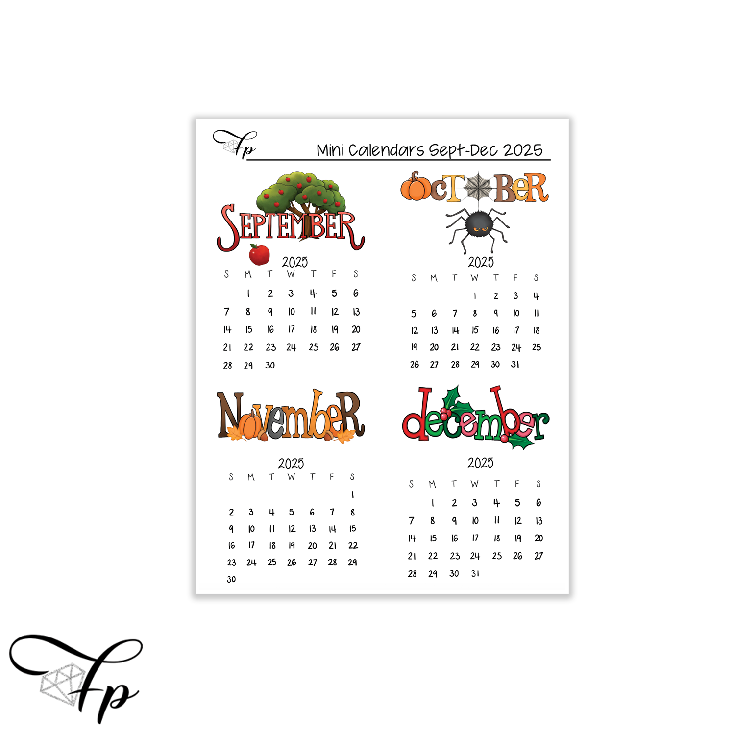 2025 Mini Calendars September-December